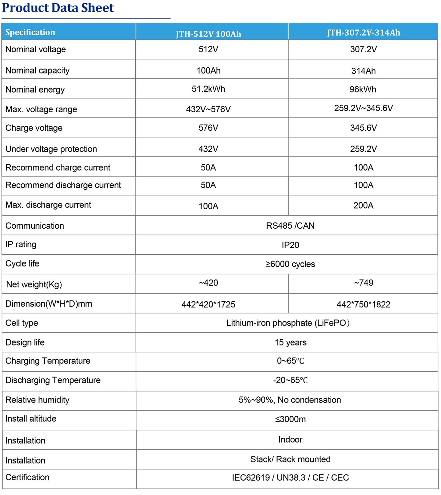 The JTH Mega Capacity Series is engineered for the most demanding energy storage applications. With massive capacities of 51kWh and 96kWh per unit, these systems form the backbone of large-scale commercial, industrial, and utility projects. Whether for peak shaving, renewable integration, or providing critical backup power for entire facilities, these high-voltage, high-capacity batteries deliver unparalleled energy density, reliability, and a rapid return on investment.