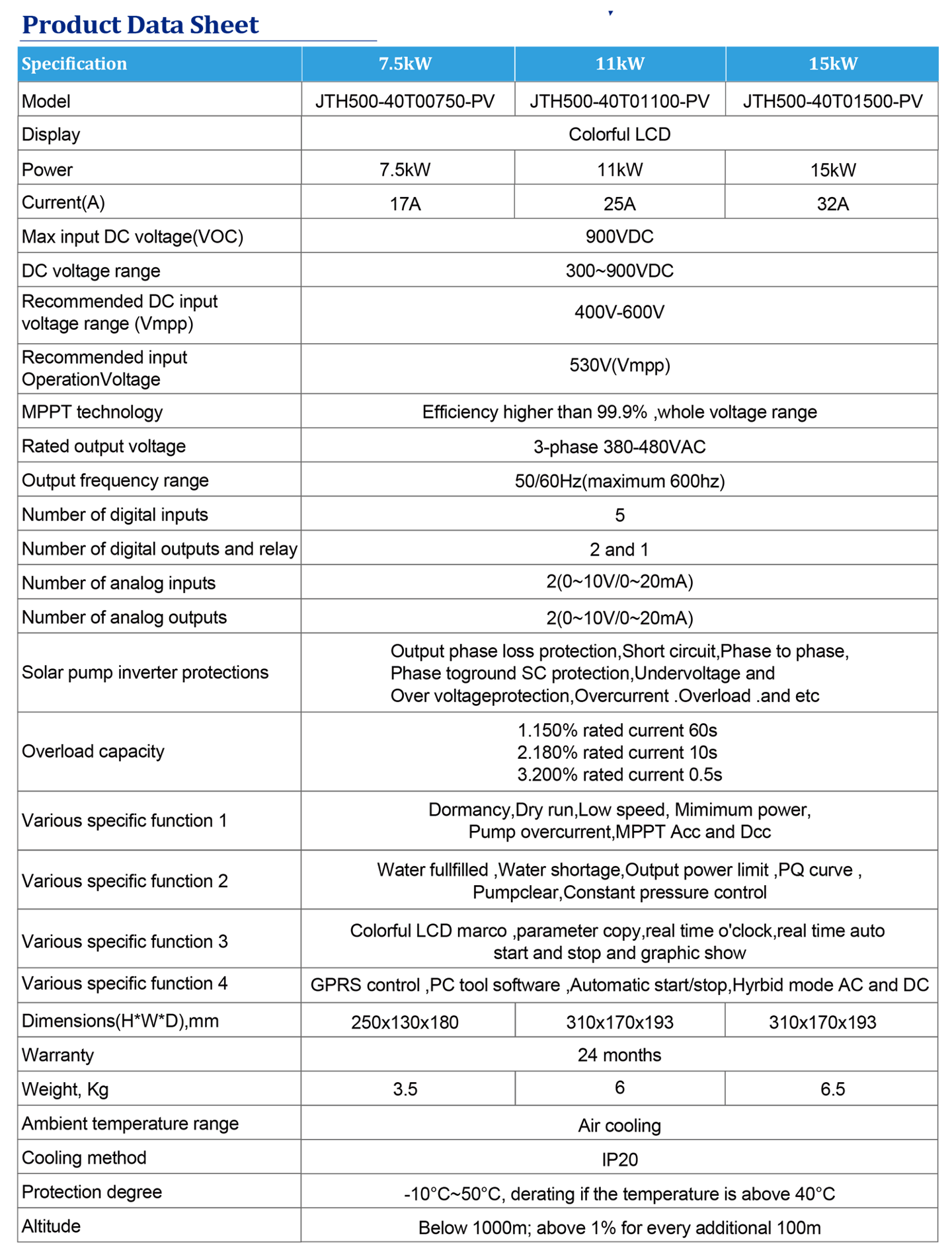 JTH-7.5kW/11kW/15kW Solar Pump lnverter